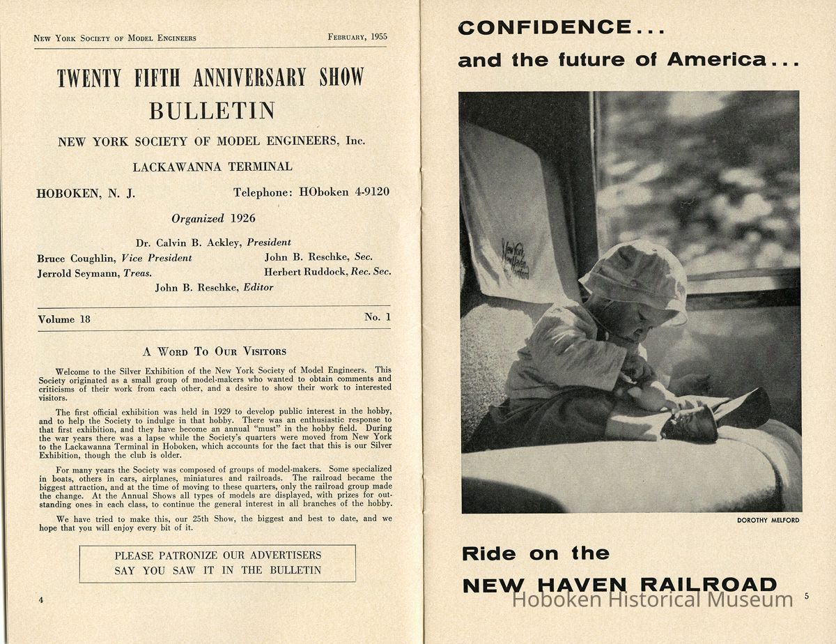 Bulletin: 25th Annual Exhibition. N.Y. Society of Model Engineers, Inc., Lackawanna Terminal, Hoboken, N.J. Vol. 18, No. 1, Feb. 1955.