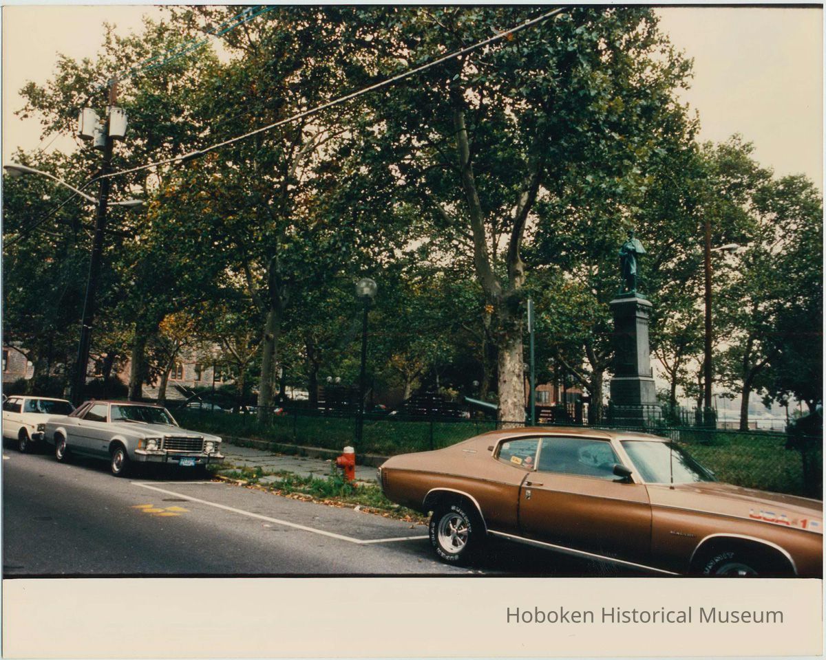Color photo of the Civil War monument in Stevens Park (formerly Hudson Park), Hoboken, no date, ca. 1975. 8" x 10" wide print. Photographer is unknown.