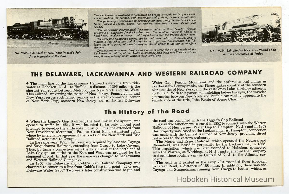 Who this brochure was intended for is not apparent as the detail about locomotives and their roles would not make it a typical publication for general passengers. It is more likely that it was for dissemination with an annual report or distribution to financial firms and banks that the Delaware, Lackawanna & Western needed to have support from for their operations.