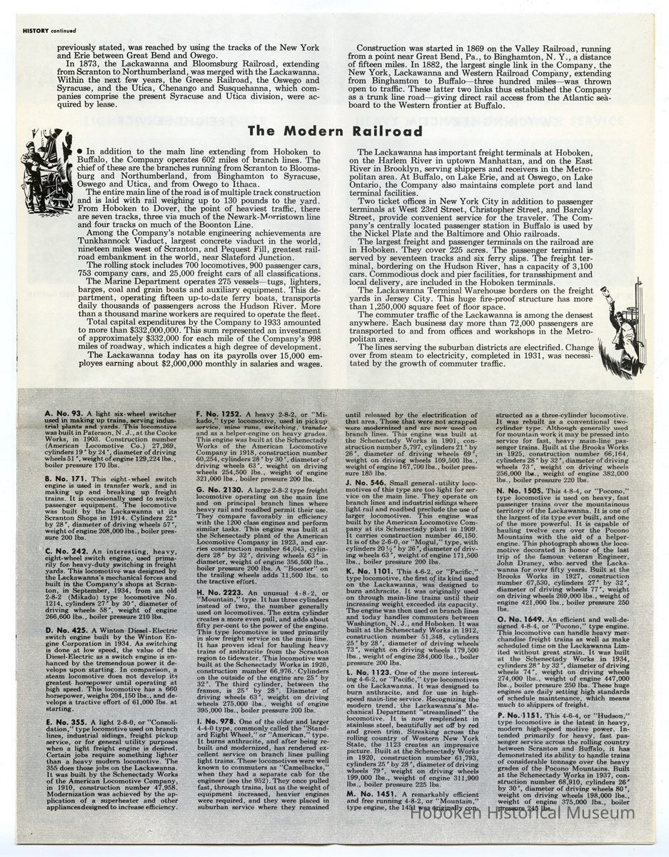 Brochure/chart: Lackawanna. The Route of Phoebe Snow. Brief History of the Railroad with Photographs and Description of its Motive Power. (New York?; no date, circa 1944-1945.)