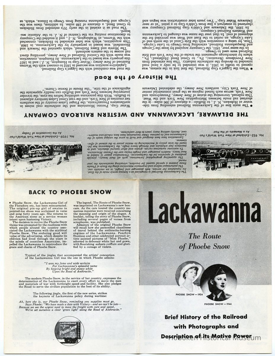 Brochure/chart: Lackawanna. The Route of Phoebe Snow. Brief History of the Railroad with Photographs and Description of its Motive Power. (N.Y.?; n.d., ca. 1944-1945.)