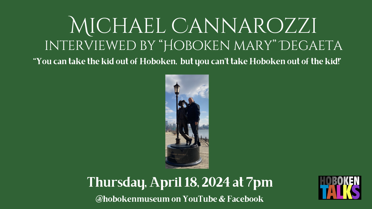 Please join us this Thursday, April 18 at 7pm when the legendary Michael Cannarozzi sits down with “Hoboken Mary” DeGaeta for a special interview on Hoboken Talks. This virtual program will be livestreamed on Facebook and YouTube.