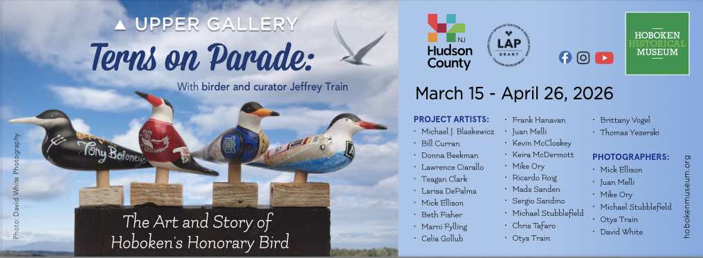 The Hoboken Historical Museum is proud to invite you to the opening reception of our next exhibit in the Upper Gallery, “Terns on Parade: The Art and Story of Hoboken’s Honorary Bird” on Sunday, March 15th from 2pm to 5pm.