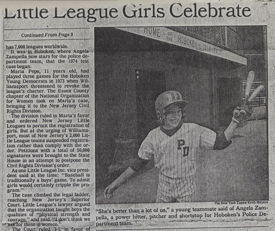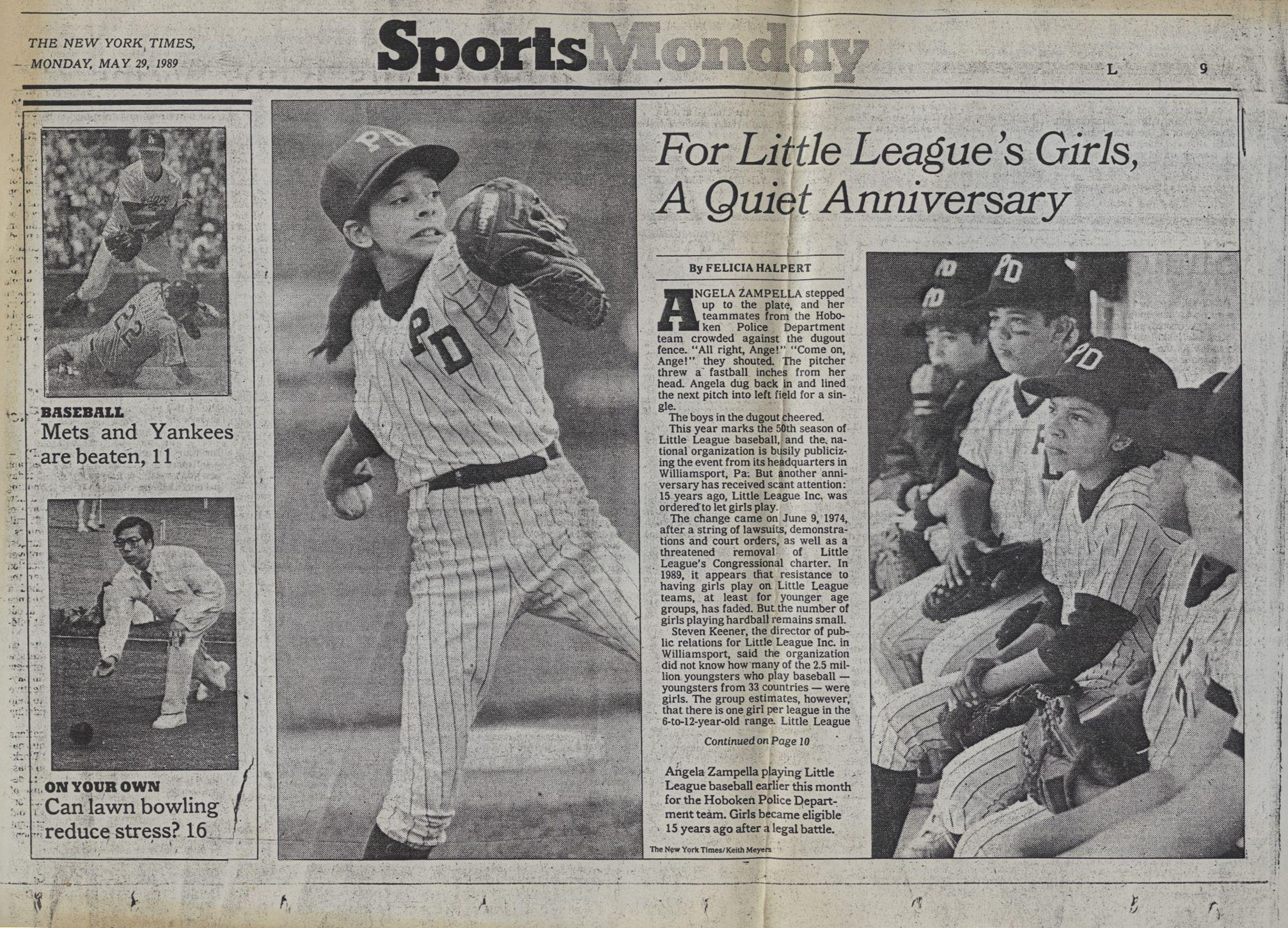 “My parents always supported whatever I wanted to do. They felt that if I could hold my own, then I could do whatever I wanted, and it was nobody’s business.” Again, no surprise that the positions Angela played were two of the most important on the diamond – pitcher and shortstop. Her team even won sectionals. “We had a lot of good players. I loved Little League. Thank you, Maria Pepe, for paving the way for girls in baseball.”